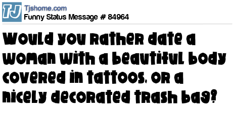 X Would you rather date a woman with a beautiful body covered in tattoos, or a nicely decorated trash bag?
