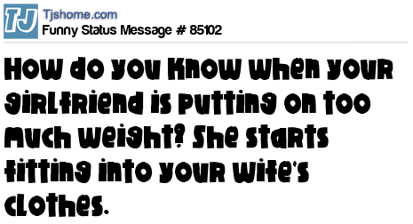 - # 172940 You know your girlfriend is getting fat when she fits in your wifes clothes !