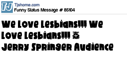 X is We love Lesbians!!! We love Lesbians!!! ~ Jerry Springer Audience