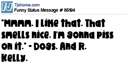 X says "Mmmm. I like that. That smells nice. I'm gonna piss on it." - Dogs. And R. Kelly.
