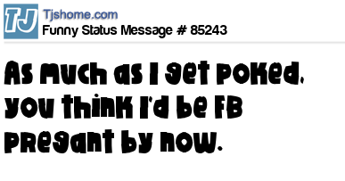 - # 27025 If I got poked in real life as much as I get poked on Facebook, I'd be one happy woman and would never leave my room!!