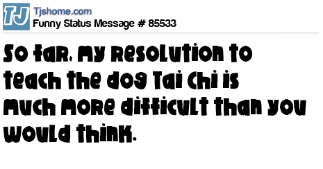X says So far, my resolution to teach the dog Tai Chi is much more difficult than you would think.