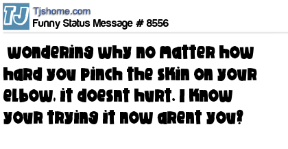 X wondering why no matter how hard you pinch the skin on your elbow, it doesnt hurt. I know your trying it now arent you?