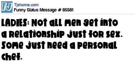 X says LADIES: Not all men get into a relationship just for sex. Some just need a personal chef.