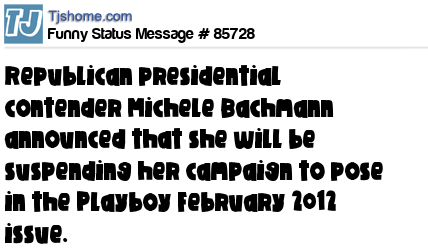 X Republican presidential contender Michele Bachmann announced that she will be suspending her campaign to pose in the Playboy February 2012 issue.