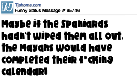 X Maybe if the Spaniards hadn't wiped them all out, the Mayans would have completed their f*cking calendar!