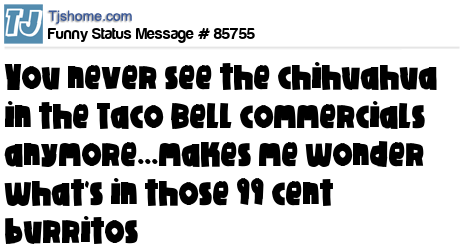 X says you never see the chihuahua in the Taco Bell commercials anymore...makes me wonder what's in those 99 cent burritos