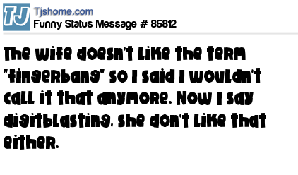 X is The wife doesn't like the term "fingerbang" so I said I wouldn't call it that anymore. Now I say digitblasting, she don't like that either.