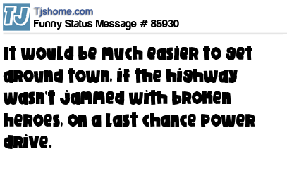 X says It would be much easier to get around town, if the highway wasn't jammed with broken heroes, on a last chance power drive.