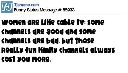 X is women are like cable tv: some channels are good and some channels are bad, but those really fun kinky channels always cost you more.