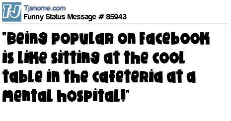 - # 63894 â– Being popular on Facebook is like sitting at the cool table in the cafeteria at a mental hospital.