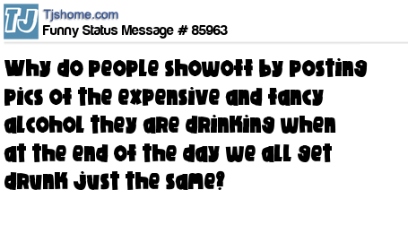 X says Why do people showoff by posting pics of the expensive and fancy alcohol they are drinking when at the end of the day we all get drunk just the same?