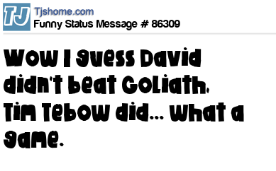 X Wow I guess David didn't beat Goliath, Tim Tebow did... what a game.