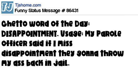 - # 67325 Ghetto Word Of The Day: DISAPPOINTMENT. Usage: "My parole officer tol' me if I miss disappointment they gonna sendin my a$$ to jail"