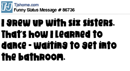 - # 37149 I grew up with six sisters. That's how I learned to dance - waiting for the bathroom.