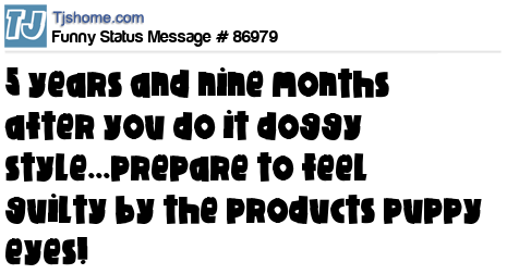 X says 5 years and nine months after you do it doggy style...prepare to feel guilty by the products puppy eyes!