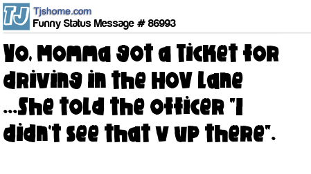 X says Yo, Momma got a Ticket for driving in the HOV Lane ...She told the officer "I didn't see that v up there".