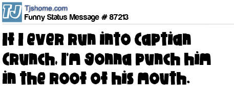 X is If I ever run into Captian Crunch, I'm gonna punch him in the roof of his mouth.