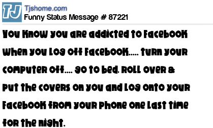 - # 39481 You know you're addicted to Facebook when you log off your computer, leave the house, get in your car and log back on using your phone.