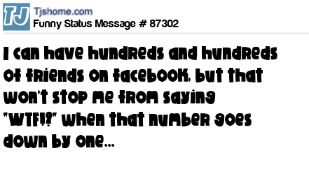 - # 66120 You can have hundreds and hundreds of friends on Facebook, but that won't make you stop staying "WTF?" when that number goes down by 1....