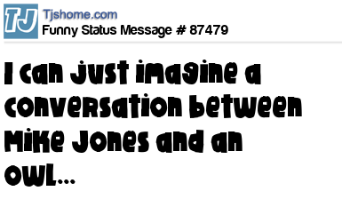 - # 79451 A Dang Owl outside won't shut up... It keeps asking me "WHO"... I've said Mike Jones like 30 times