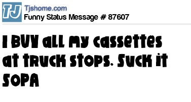 X I BUY all my cassettes at truck stops. Suck it SOPA