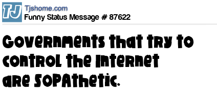- # 87548 Governments that try to control the internet are SOPAthetic