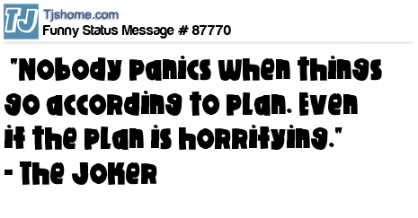 X "Nobody panics when things go according to plan. Even if the plan is horrifying." - The Joker