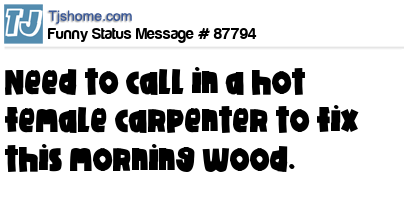 - # 39794 Waking up with morning wood is normal, but trying to piss with morning wood is an adventure.