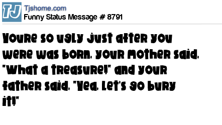 X youre so ugly just after you were was born, your mother said, "What a treasure!" and your father said, "Yea, let's go bury it!"