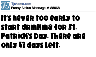 X says It's never too early to start drinking for St. Patrick's Day. There are only 52 days left.