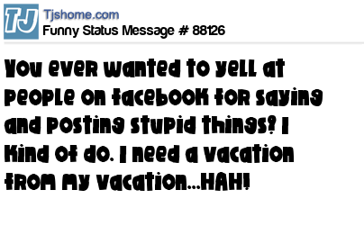X You ever wanted to yell at people on facebook for saying and posting stupid things? I kind of do. I need a vacation from my vacation...HAH!