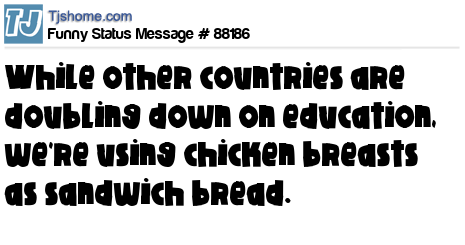 X While other countries are doubling down on education, we're using chicken breasts as sandwich bread.