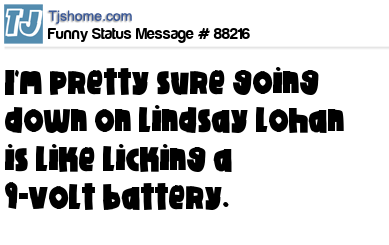 X says I'm pretty sure going down on Lindsay Lohan is like licking a 9-volt battery.