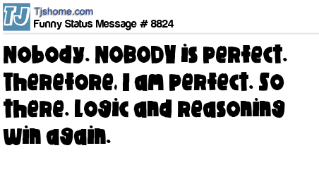 X is nobody. NOBODY is perfect. Therefore, I am perfect. So there. Logic and reasoning win again.