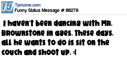X   I haven't been dancing with Mr. Brownstone in ages. These days, all he wants to do is sit on the couch and shoot up. :(