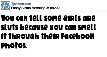 X says You can tell some girls are sluts because you can smell it through their Facebook photos.
