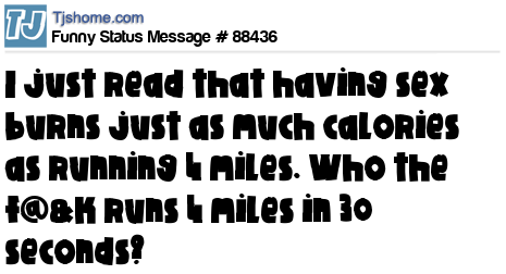 X is I just read that having sex burns just as much calories as running 4 miles. Who the f@&k runs 4 miles in 30 seconds?