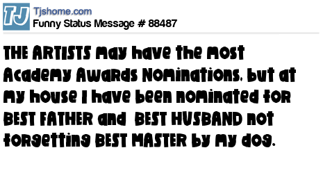X says THE ARTISTS may have the most Academy Awards Nominations, but at my house I have been nominated for BEST FATHER and BEST HUSBAND not forgetting BEST MASTER by my dog.