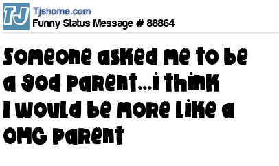 X is someone asked me to be a god parent...i think I would be more like a OMG parent