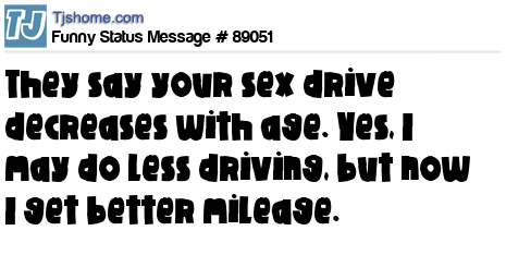 X  They say your sex drive decreases with age. Yes, I may do less driving, but now I get better mileage.