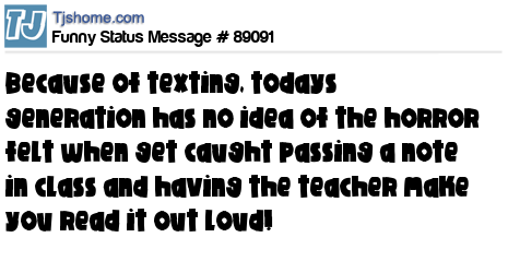 X says Because of texting, todays generation has no idea of the horror felt when get caught passing a note in class and having the teacher make you read it out loud!