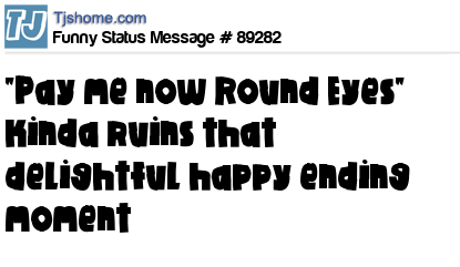 - # 5476 I don't want a happy ending... that implies something has to end..I want a fantastic right now! !! Oh, but wait. I've heard happy endings can be good!! I need to check into that!
