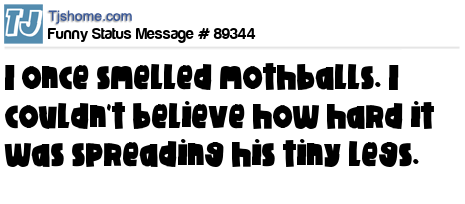 X I once smelled mothballs. I couldn't believe how hard it was spreading his tiny legs.