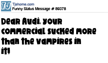 X is Dear Audi, your commercial sucked more than the vampires in it!