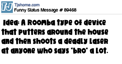 X Idea: A Roomba type of device that putters around the house and then shoots a deadly laser at anyone who says "bro" a lot.