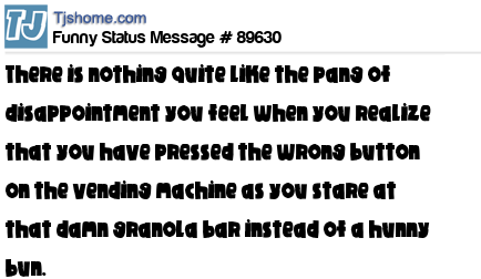 X says There is nothing quite like the pang of disappointment you feel when you realize that you have pressed the wrong button on the vending machine as you stare at that damn granola bar instead of a hunny bun.