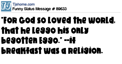 X "For God so loved the world, that he leggo his only begotten Eggo." --if breakfast was a religion.