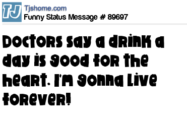 - # 89584 Doctors say a drink a day is good for the heart. I say, a case a day is good for the memory, it helps you forget all the as$holes around you!