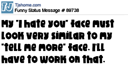 X says My "I hate you" face must look very similar to my "tell me more" face. I'll have to work on that.